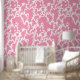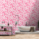 Unique cow print wallpaper in pink and white with hand-drawn patches forming a seamless pattern perfect for a pink nursery, your daughter's bedroom, or an accent wall.