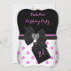 Pink White Diamond Heart Black Polka Dots Birthday Invitation