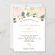 A chic white background. Decorated with watercolored flowers, florals pink roses, white orchids and a yellow gerbera, eucalyptus greenery and faux gold sprigs. Personalise and add your names and wedding details. Black and golden coloured letters.