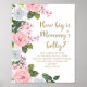 Beautiful and elegant pink and white springtime floral / roses and green leaves botanical watercolor baby shower "How big is Mummy's belly" poster. Perfect for your springtime or summer baby girl outdoor shower.