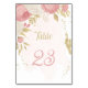 Romantic pink & white flowers with gold leaves botanical wedding table number card.