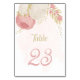Romantic pink & white flowers with gold leaves botanical wedding table number card.