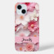 A pink and white flower pattern. Personalise and add your name. The name is written with a modern hand lettered style script.