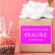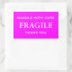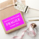 Stickers with: Fragile. Handle with Care. Thank you. White text on a pink background. Personalise with your information using the easy templates. Font colour, font style, font size, and pink background colour are customisable.