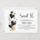 Invite your friends and loved ones to celebrate your daughter’s 16th birthday with this black, white and gold heart-themed invitation. A variety of paper types and corner styles are available for your unique invitations, along with the option to download if you prefer a digital format.