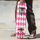 Pink White Harlequin Diamonds Checkers Design Skateboard