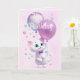 Pink White Kitten with Balloons Birthday Card