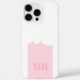 The design shows a pink abstract pattern with deep pink name initials monogram in it with a white background. If you purchase any model other than 16 pro max, then use "edit using design tool" button to adjust the placement of the text.