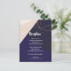 Pink white navy blue & gold geometric reception announcement postcard