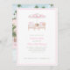 This trendy Poolside Cocktail party invitation features a pink and white striped poolside umbrella in the middle of two lounge chairs. All the details of can be edited to meet the needs of your event. On the back is a row of pool loungers with pink and white striped umbrellas set up near a swimming pool.