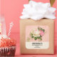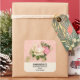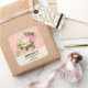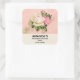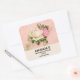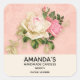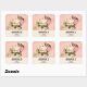 Business stickers with a floral rose bouquet with white and pink flowers. Background is pink with a floral pattern. Pretty and elegant design.