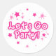 Pink & White Sparkle Stars Let's Go Party Birthday Classic Round Sticker