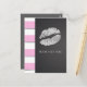 Pink & White Stripe Faux Silver Shimmer Lips Event Postcard