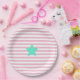 Pink & white stripes and teal star - Paper Plates