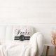 This Soft Pink and White Striped Pattern American MoJo Throw Pillow with personalised monogram, the word Paris with the Eiffel Tower and a line of printed white diamonds on a black band will look amazing in your bedroom or living room as an accent pillow. Monogram Gallery Gifts© Elke Clarke Designs ©