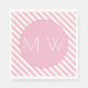 NewParkLane - Paper Napkins, with a modern fun pattern of hot pink and white stripes striped pattern, with a pink circular frame for your personal monogram. Easy to adjust in Zazzle.