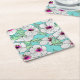 Pink & White Tropical Hibiscus Floral Pattern Square Paper Coaster