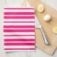 Pink White Vertical Stripes Pattern Design Tea Towel