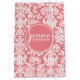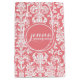 Monogrammed on front and back elegant white vintage damasks over a pink background. Many colours are available.