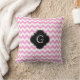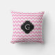 Pink Wht Chevron Zigzag Black Quatrefoil Monogram Cushion