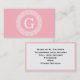 Pink Wht Greek Key Rnd Frame Initial Monogram Business Card