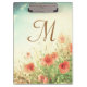 Pink Wild Flowers Field Country Antique Vintage Rustic Monogram Initial Clip Board Personalised