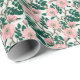 Pink Wild Rose Flowers & Green Leaves Pattern Wrapping Paper