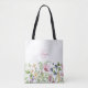 Pink wildflower floral monogram tote bag. Easy to change the text. Pretty watercolor floral for spring and summer.