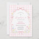 Celebrate your daughter’s special day with this elegant pink gingham baptism invitation. Featuring a soft watercolor floral wreath accented with delicate pink bows and a gentle cross detail, this design combines timeless Christian symbolism with a sweet, feminine aesthetic.
