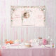 Celebrate your baby girl's milestone with the "Little Miss Onederful, Watercolor Wildflower 1st Birthday Backdrop," a beautifully designed party essential personalised with the celebrant's name, photo, and birthday date. Crafted in soft hues of pink and sage green, this backdrop features elegant calligraphy intertwined with a delicate watercolor painting of pink wildflowers framing the edges, creating a stunning visual centerpiece. Perfect for adding a touch of elegance to your little one's first birthday party decor, it serves as a memorable backdrop for photos that will be cherished for years to come. The combination of personalised details and artistic design makes it a unique and cherished addition to your baby girl's special day.