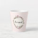 Delicate elegant pink wildflower wreath with custom scripted name with a pastel pink blush background. A delicate lovely latte mug style. A series of these mugs are a great housewarming gift to display on open shelves to complement kitchen decor.