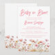 Pink wildflowers girl baby shower. Customise names, dates, and information.