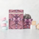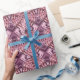 This striking wrapping paper features a repeating pattern of an intricate abstract mandala consisting of small swirling satin fabric folds in luminous shades of wine, purple and pink.