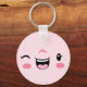 Cute and fun Pink Winking Kawaii Face Keychain. Great for kids and adults.