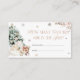 The Pink Winter Baby Polar Bear How Many Candies Enclosure Card is a charming and whimsical design, ideal for a cosy winter-themed celebration. At the heart of the items is an adorable polar bear, whose soft, cuddly appearance evokes warmth and joy. The bear, surrounded by gently falling snowflakes, creates a dreamy winter wonderland, perfectly suited for a baby shower during the colder months. Blush pink roses delicately adorn the design, adding a soft, romantic touch that balances the frosty backdrop. A beautifully decorated Christmas tree stands in the background, adding a festive flair that captures the spirit of the season. The snowy landscape, with the polar bear, brings a sense of wonder and excitement to the invitation. This combination of snow, blush roses, and winter elements makes the design both magical and heartwarming, setting the perfect tone for a joyful celebration of the new baby to come. Matching items available.
