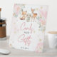 Cute watercolor pink gold winter wonderland woodland baby girl shower cards and gifts sign with forest animals: fox, bunny and deer.