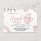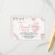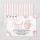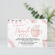 Elegant pink winter baby shower thank you card featuring a cozy hot cocoa mug, festive lights, candy canes, snowflakes, gifts, and soft pastel foliage. Perfect for “Baby It’s Cold Outside” showers, winter celebrations, Christmas baby showers, and pink holiday themes. A lovely way to thank guests for their gifts, love, and support. Printable and editable design.