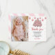 Pink Winter Christmas Tree Birthday Photo Thank You Card