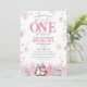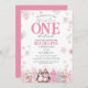 Pink watercolor invitation for you child's winter ONEderland themed first birthday party!