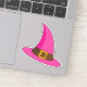 An illustration of a cute cartoon pink witch hat for halloween and witch craft enthusiast. This design is a gift idea for girly aesthetic lovers and fuchsia or magenta colour lovers.