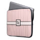 Add a little swank to your style with this simple yet classic pinstripe pattern with a sweet pastel pink base and a deep onyx black accent stripe. Customize the monogram on this sleeve with your initial to make it uniquely your own. This sleeve is available in 10", 13", and 15" sizes to fit a variety of laptops, netbooks, and tablets.