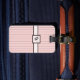 Add a little swank to your style with this simple yet classic pinstripe pattern with a sweet pastel pink base and a deep onyx black accent stripe. Customise this luggage tag with your initial on the front and details on the back to make finding your luggage easier when you travel.
