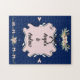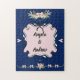 Displaying a blue background, this wedding bride and groom puzzle displays your names in a lovely display. With a pink fancy frame and floral embellishments.
