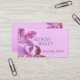 Original nature art custom business card template has purple leaves on pink background ready to personalise for any business or profession. Original art and photography by Ann Powell on custom business cards.