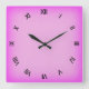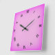 A solid pink that gradually changes to shimmering pink at the edge. Twelve black numerals