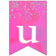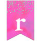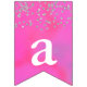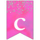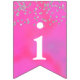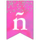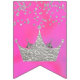 Glam Quinceañera pennant bunting done in a hot pink marbled look with silver glitter look and silver tone crowns. White text reads Quinceañera.