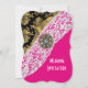 Classy chic elegant luxury bright fuchsia pink and black with gold vintage damask pattern and old white lace filigree, a luxury opulent wedding invite, with modern girly shocking pink customisable background. A modern contemporary gold swirl design and a faux diamond crystal rhinestone jewel, can easily be personalised with the bride and grooms names to the text templates to create a unique custom formal traditional wedding invitation for your special romantic stylish occasions and celebrations. Visit the PERSONALIZED_WEDDINGS STORE for matching coordinated wedding suite sets. Can easily customised for other special occasions and celebrations. Customise the background colorof the bottom half from a range of custom colours to create a completely different unique custom look to this split coloured lacy invite. PLEASE NOTE the golden colour is not metallic or shiny.