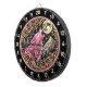The wolf’s silhouette, set against a shimmering starry sky, symbolises resilience, freedom, and the untamed spirit of nature. The circular design adds depth and elegance, ensuring it stands out as both an art piece and a functional game accessory.