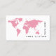 A business card for a travel agent, or any other professional... with the image of a pink map of world on white background colour.