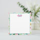 This cute note card features a pretty floral pattern in shades of pinks, teals, greens and yellows on white. Personalise the monogram with your choice of name and initial.